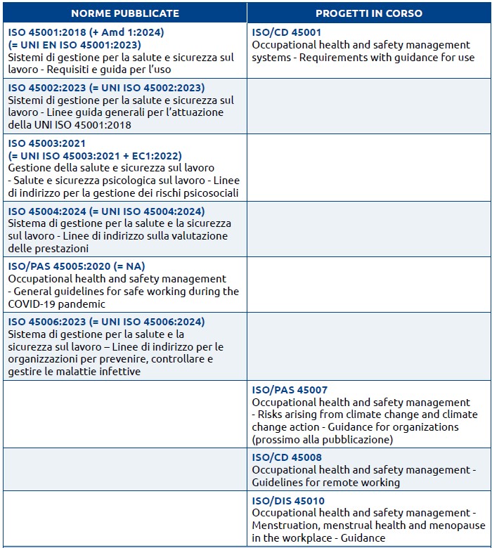 PROSPETTO 1 – LA SERIE ISO 45000: NORME PUBBLICATE E PROGETTI IN CORSO